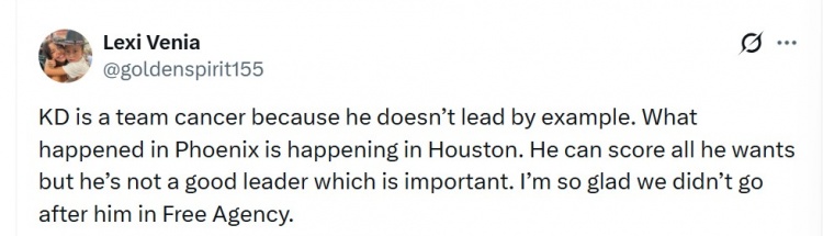 鲸鱼体育-网友:KD是毒瘤&太阳的事在火箭重演 KD:你没进过更衣室怎么知道 byxiaoqiao 发表于2026年03月15日 2月7日讯 今天,杜兰特扛着键盘和网友对线。网友:杜兰特被认为是一个团队毒瘤,因为他没有以身作则。在菲尼克斯发生的事情现在也在休斯敦重演。他可以随心所欲地得分,但他不是一个好的领袖,而这一点非常重要。我很高兴我们在自由球员市场上没有追求他。杜兰特:你从未进过更衣室,你怎么会知道??这位网友指的是杜兰特在昨天的比赛中让申京防守的一幕。相关阅读:申京被克尼佩尔一步过轻松上篮!杜兰特摊手大喊:你防一下啊😡 你可能感兴趣的内容 上一篇文章 鲸鱼体育-红牌有影响,切尔西场均跑动距离105.7公里,为全英超最低 发表于2026年03月15日 byxiaoqiao 查看文章 下一篇文章 鲸鱼直播tv版-【中超】王上源闪击舒尼奇乌龙 广州城1比1河南 发表于2026年03月16日 byxiaoqiao 查看文章 你可能会喜欢